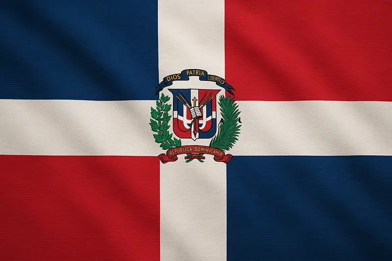 ドミニカ共和国の国旗、赤と白をあしらったジャケット。